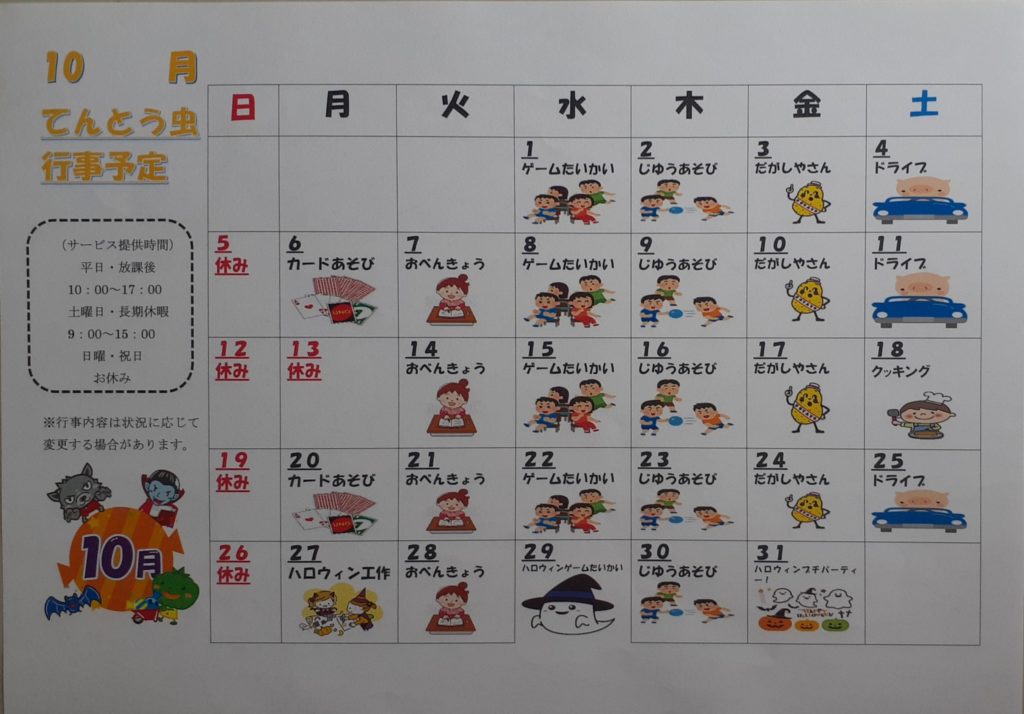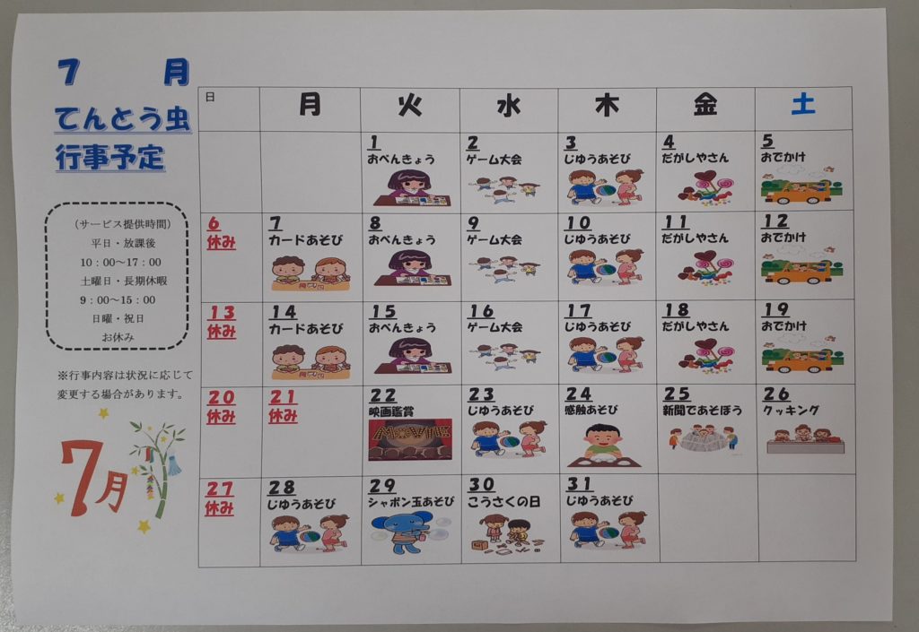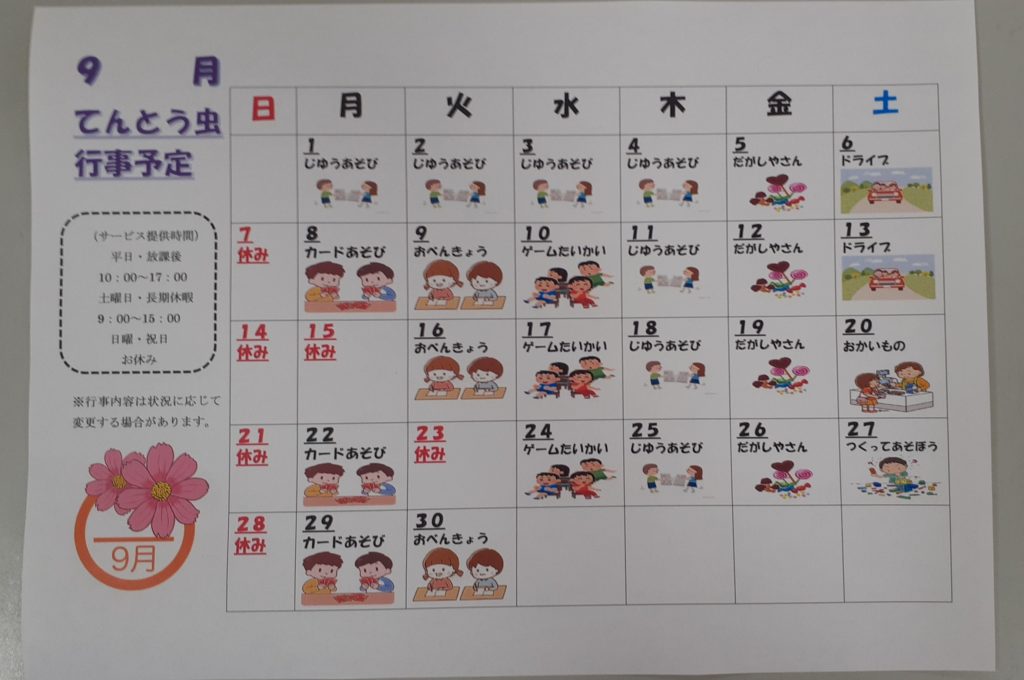 てんとう虫では毎日イベントを行っています。気になるイベントの日に体験での参加も可能です。ぜひお気軽にお問合せ下さい。