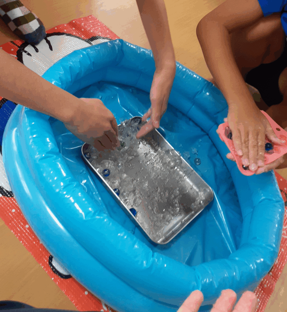 触ると冷たく気持ちがいいのはもちろんぷにぷにの感触にやみつきになり手が冷たくなるまで遊ぶ子ども達でした♡