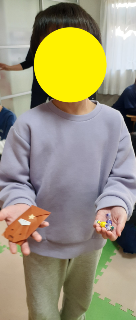 当たったお年玉を使い、景品を買い満足そうな子ども達。おまけに手作りのお守りを渡すと大切に持って帰って鞄につけてくれました。