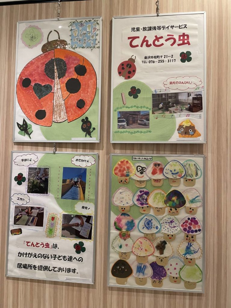 ここではてんとう虫の作品を紹介します。その他にも各事業所で作ったオリジナルの素敵なポスターになっていますのでお時間のある方は是非お立ち寄りください☺
