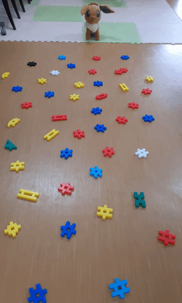 以外にも子ども達はスラスラと避け簡単そうにぬいぐるみを取りに行くので、追加ルールを設定しタイムで競ったり中にはブロックの上を歩く子ども達もいました!