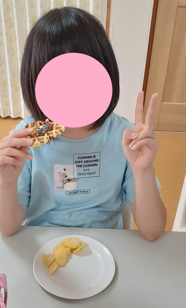 そしておやつは職員さんの手作りおやつの「ワッフル」を食べました🍴